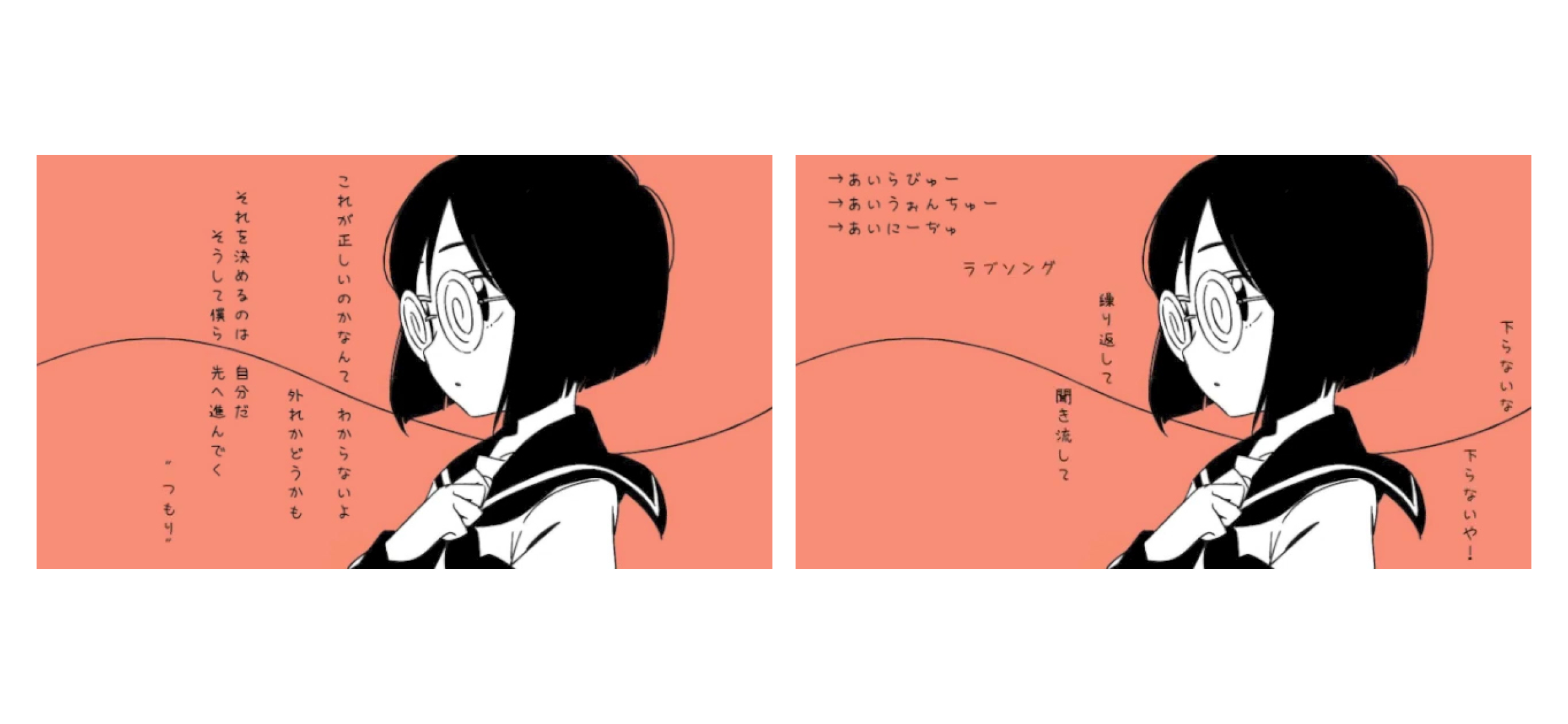 【映像】グルメガネの普遍論 概略 ボーカロイドと映像の処女作。イラストレーションの曲線に合わせてタイポグラフィーを組んだ。 作品 使用ツール Adobe Flash クレジット takeイラストレーション Sotono楽曲、動画