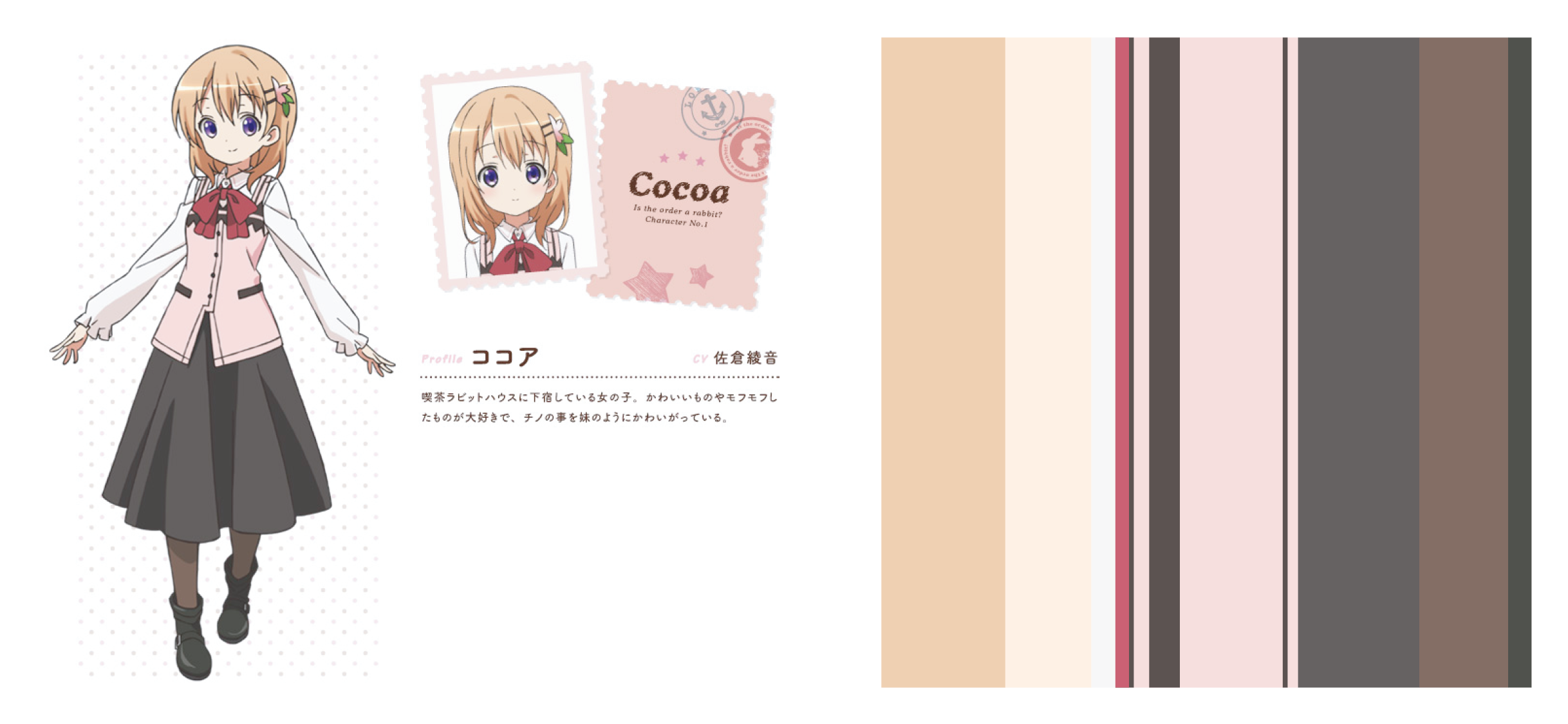 アニメ「未確認で進行形」「ご注文はうさぎですか?」のキャラクターをストライプに落とし込んだ。