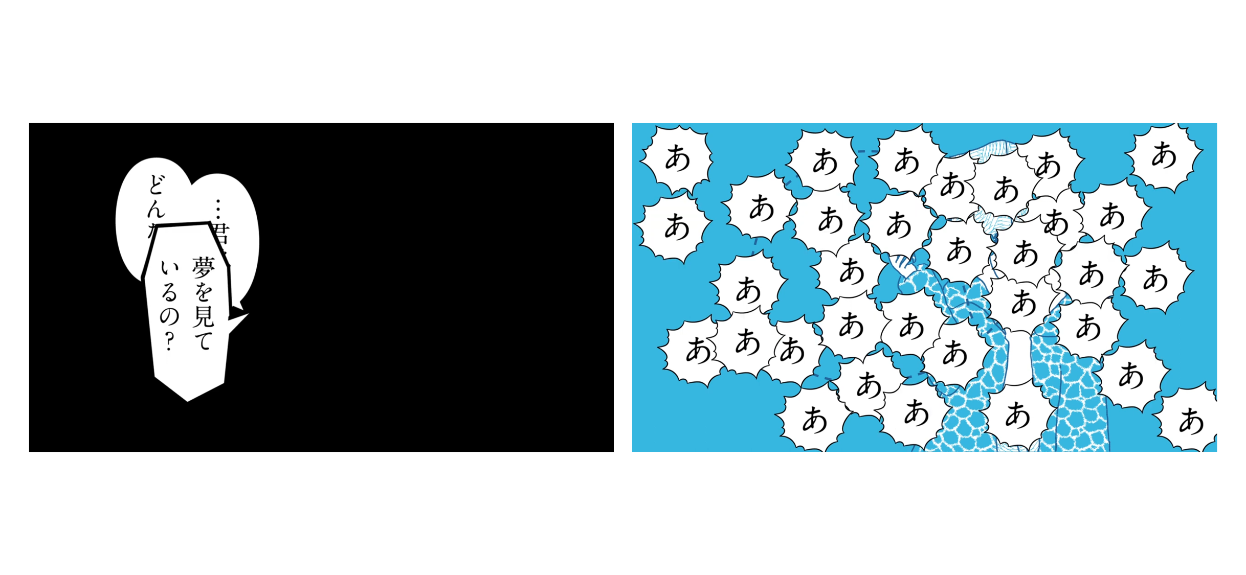 【映像】-1 概略 紙袋を被った人間がただひたすら自分の境遇を嘆く曲。漫画的に吹き出しを使うことで紙袋の吐露になるように制作した。 作品 使用ツール Clip Studio Adobe Illustrator Aviutl クレジット Sotono楽曲、動画、絵