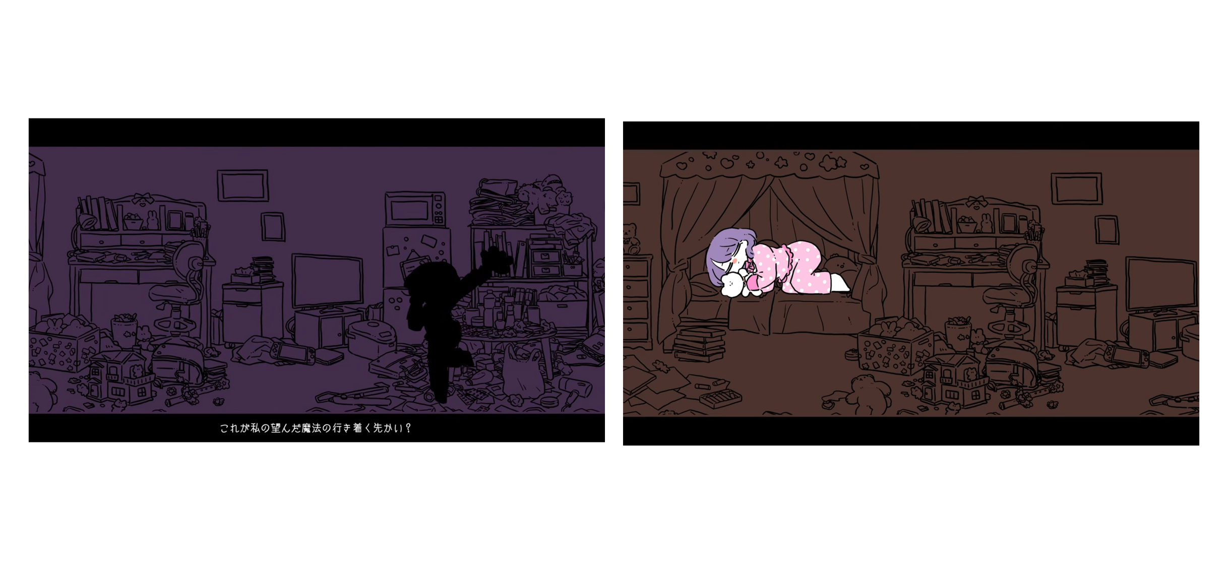 最後色が変わるのは、夜の暗闇から常夜灯のオレンジに切り替わるという表現です。